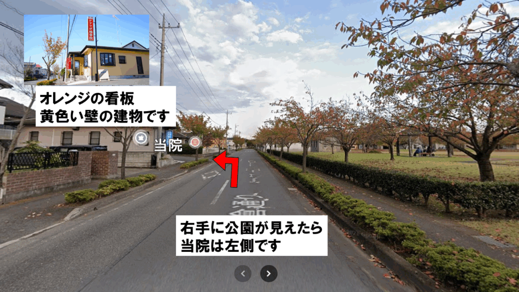 ④右手に公園が見えたら当院は左側です